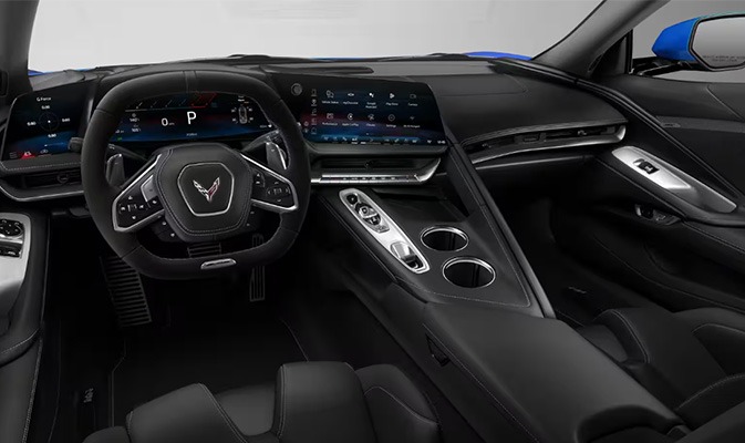 Step inside the Corvette Z06 and enjoy a luxurious, driver-focused cockpit. Ergonomic seats with heating and cooling, soft-touch leather, Alcantara, and carbon fiber accents make every ride comfortable and stylish. The cockpit balances race-car excitement with practicality, offering intuitive controls, fine stitching, and features designed for daily usability without sacrificing the thrill of the drive.